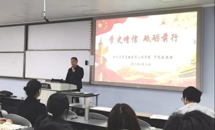 2021年4月18日下午15:40,在江安一教B407,生物医学工程学院第七周“教授开放日”活动顺利举办。我院党委书记尹光福教授为全体2019级、2020级同学带来“学史增信,砥砺前行”专题党课,引领同学们学习历史、汲取经验,助力同学们更好地把握当下、展望未来。