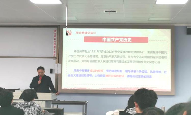 在讲座初,尹光福教授引用了习近平总书记出席党史学习教育动员大会时发表的重要讲话,指出党史是国史的核心,党史中有很多成功的经验与经受挫折的教训,对我们当代大学生有极大的指导作用。尹光福教授提出,学习党史有助于我们认清国情、坚定信念,不断加强自身建设、凝聚改革共识。随后,尹光福教授带领同学们回顾了建党建国时期筚路蓝缕、风雨兼程的艰辛过往,重走党与国百年来积极进取、不断发展的历史征程,铭记我们党对发展国家实力、改善人民生活水平做出的巨大贡献,共同展望新时期中国特色社会主义制度下实现中华民族伟大复兴,实现百年“中国梦”的美好前景。尹教授希望同学们能牢记使命,坚定理想,敢作敢为,不懈奋斗,为建设中国特色社会主义贡献自己的力量。