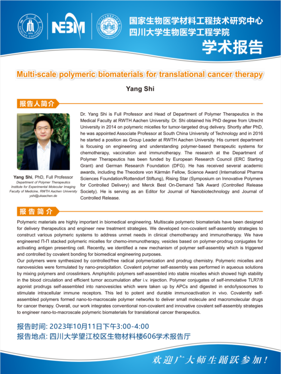 下一条:Pinchuk院士名师讲坛:The manipulation and development of novel biomaterials to meet the needs of important medical devices
