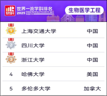 11月18日,高等教育评价专业机构软科正式发布2025“软科世界一流学科排名”(ShanghaiRanking's Global Ranking of Academic Subjects,简称GRAS)。四川大学生物医学工程学科以214.2分的总分排名跃升至全球第二位,比去年上升两位,实现历史性突破!