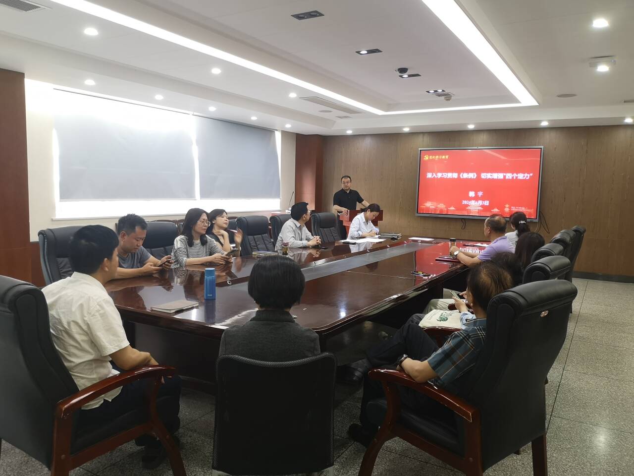 最后,韩宇书记再次强调,深化党纪学习教育,就要切实增强“四个定力”,让党员干部弄清楚自己该做什么,不该做什么,进一步增强纪律观念、提升纪律自觉。并以习近平总书记在重庆考察时的重要讲话勉励大家,希望学院全体党员干部要心有所畏,言有所戒,行有所止,以开展党纪学习教育为契机,始终做到忠诚干净担当,把开展党纪学习教育同学院重点工作紧密结合,为加快推进一流学院建设提供坚实的纪律保障,在推进学院高质量发展的新征程上勇担时代重任、奋力开拓新局。