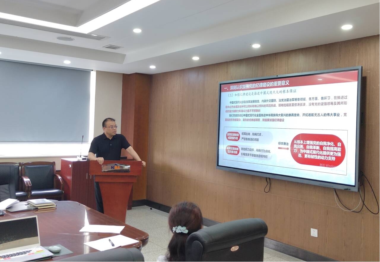 韩宇书记以“深入学习贯彻《中国共产党纪律处分条例》,切实增强‘四个定力’”为主题,首先,通过回顾百年党史,阐释了加强党的纪律建设的重要性。他指出,加强纪律建设是我们党的光荣传统和独特优势,是深入推进全面从严治党的治本之策,也是推进中国式现代化的根本保证。