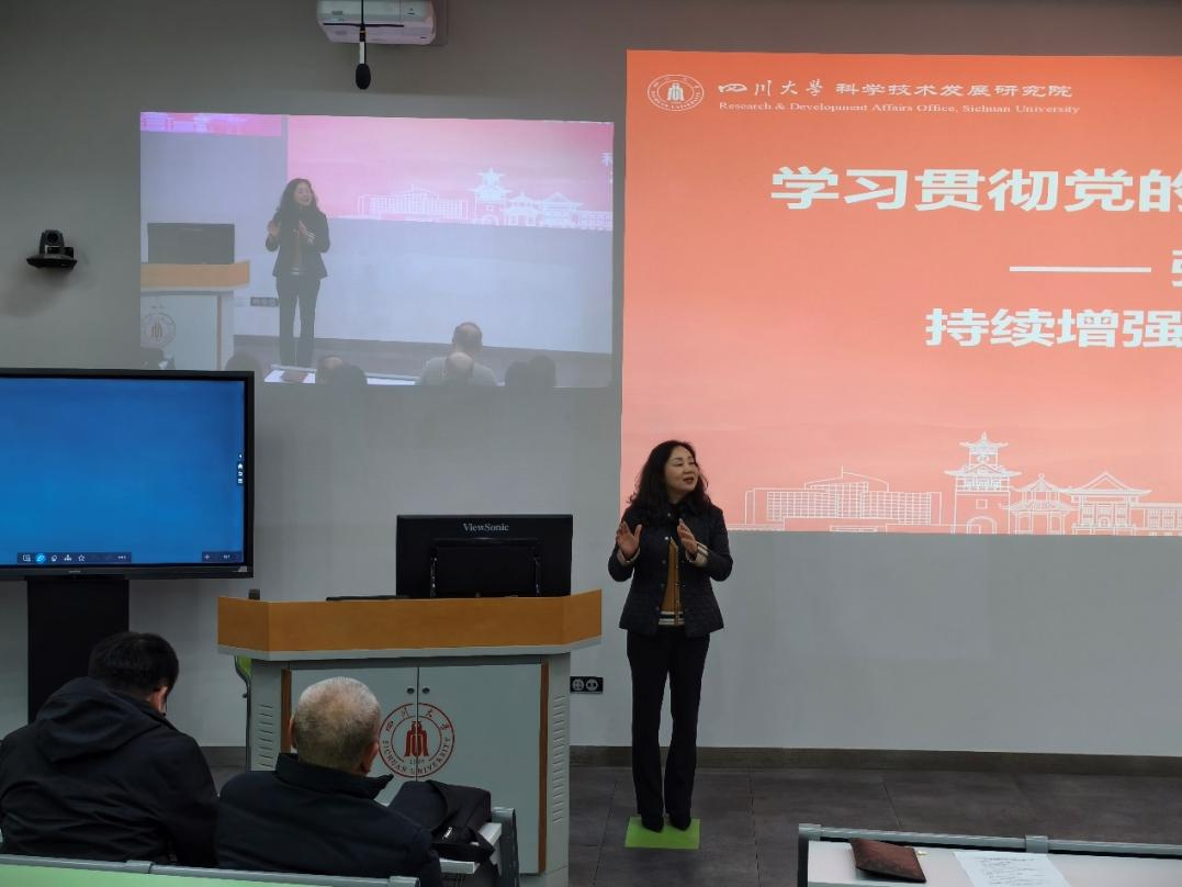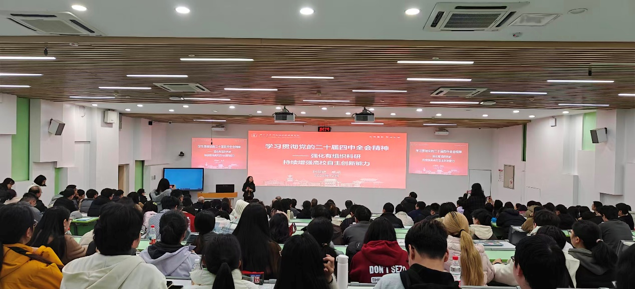 为持续深入学习贯彻党的创新理论,全面准确领会党的二十届四中全会精神核心要义与战略部署,引导全院师生党员深刻把握教育、科技、人才一体推进在支撑引领中国式现代化进程中的关键作用,12月12日下午,学院特邀四川大学科学技术发展研究院院长、我院教授、博士生导师吴尧系统解读全会精神。院党委书记韩宇、党委副书记田单以及全院师生党员参加了宣讲会。